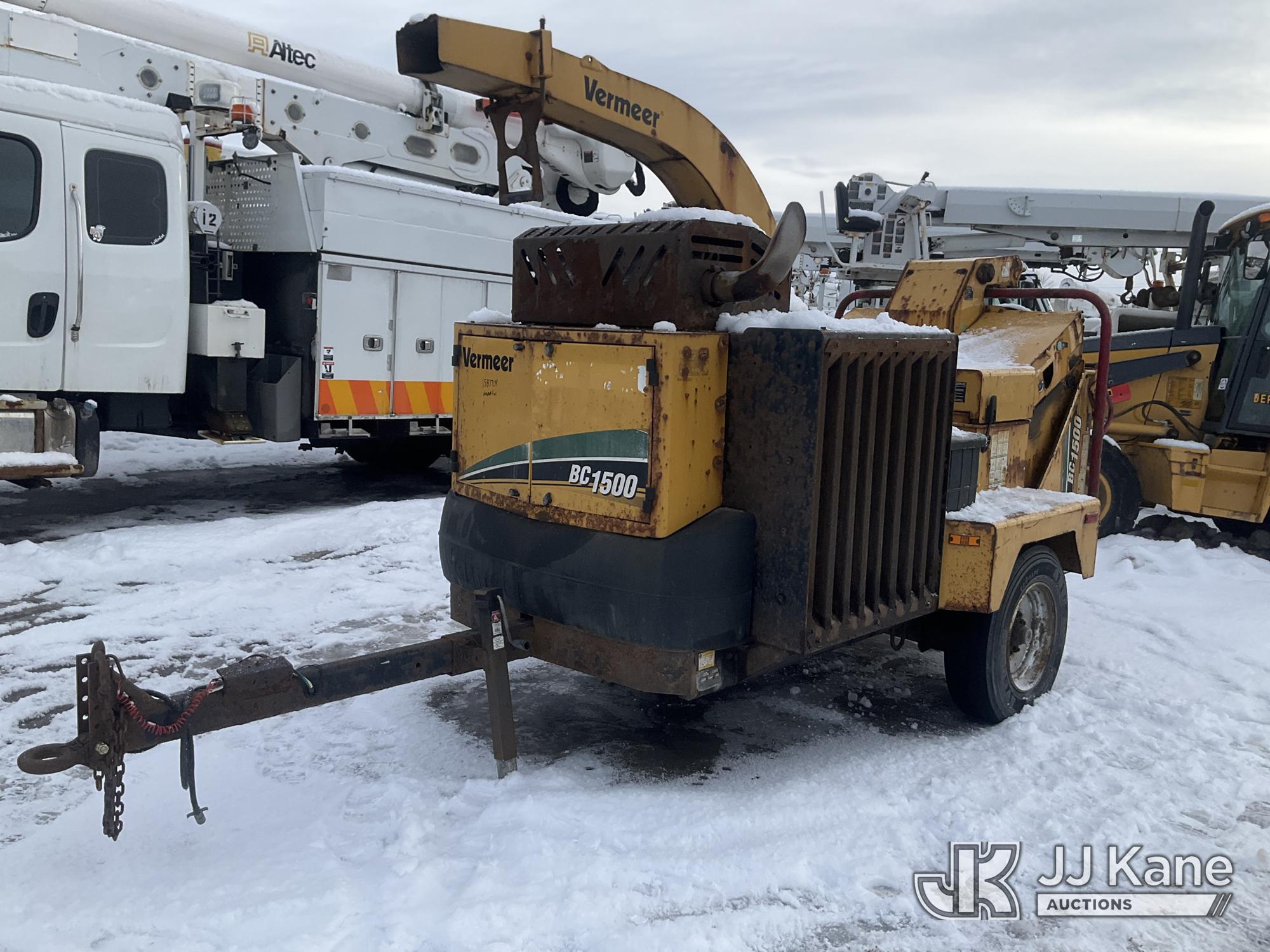 2020 Vermeer BC1500XL Chipper (15in Drum), s/n 1VR2181V3M1012061, gas, trailer mtd (No Title) (Not Running, Condition Unknown) (Cranks Won’t Start) (Reads 2,326 hours) NOTE: This unit is being sold ...
