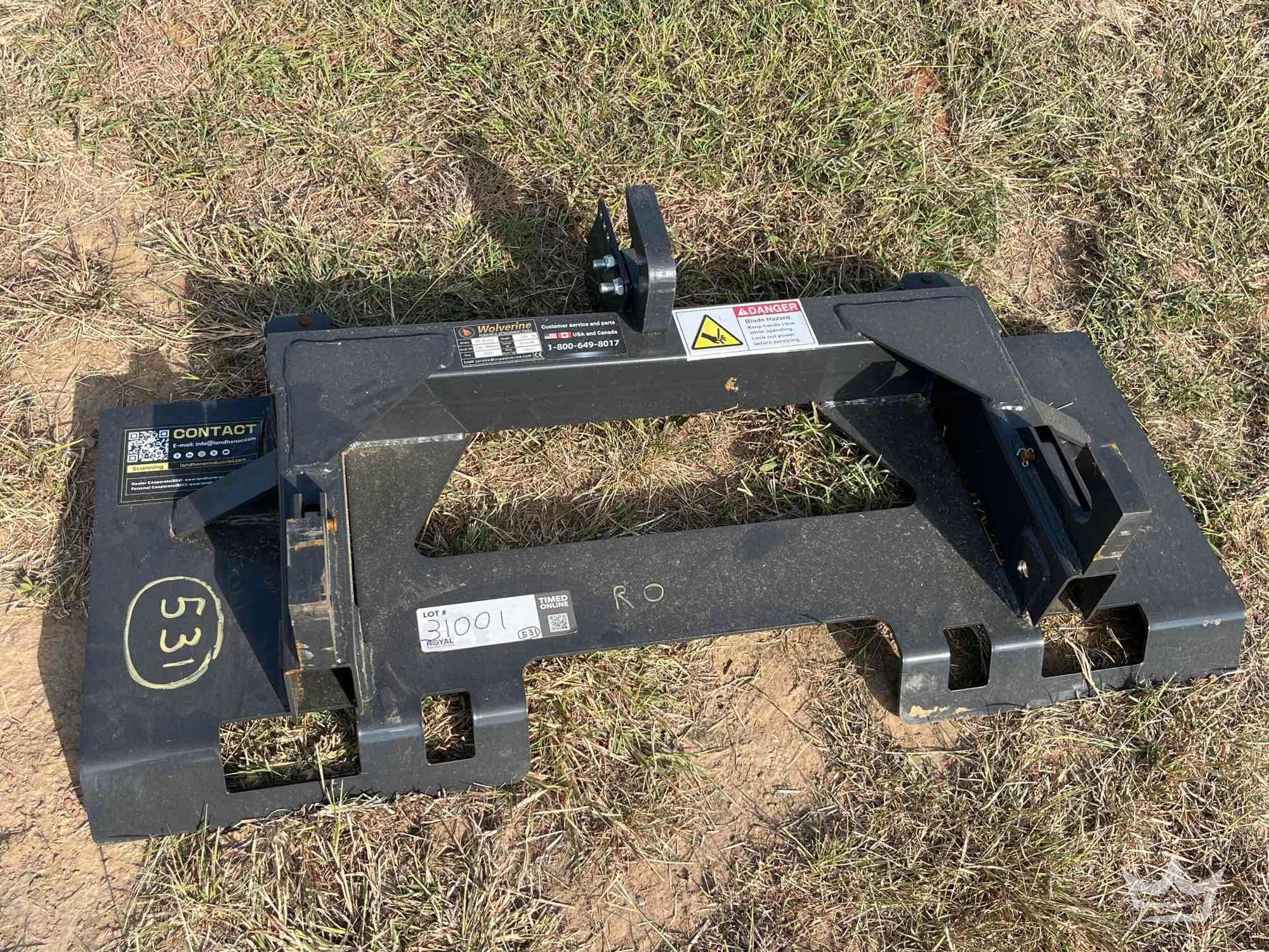 2025 Wolverine PT-16-01C 3 Point Quick Tach Skid Steer Attachment...